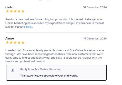 I needed help for a small family owned business and Ace Online Marketing came through . We have been received great feedback from new customers that were easily able to find us and identify our specialty !